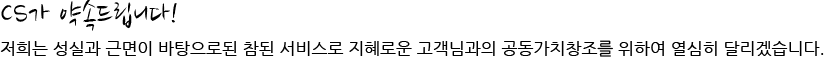 저희는 성실과 근면이 방탕으로 된 참된 서비스로 지혜로운 고객님과의 공동가치 창조를 위하여 열심히 달리겠습니다.
